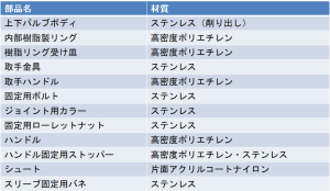 バルブ構成部品と材質